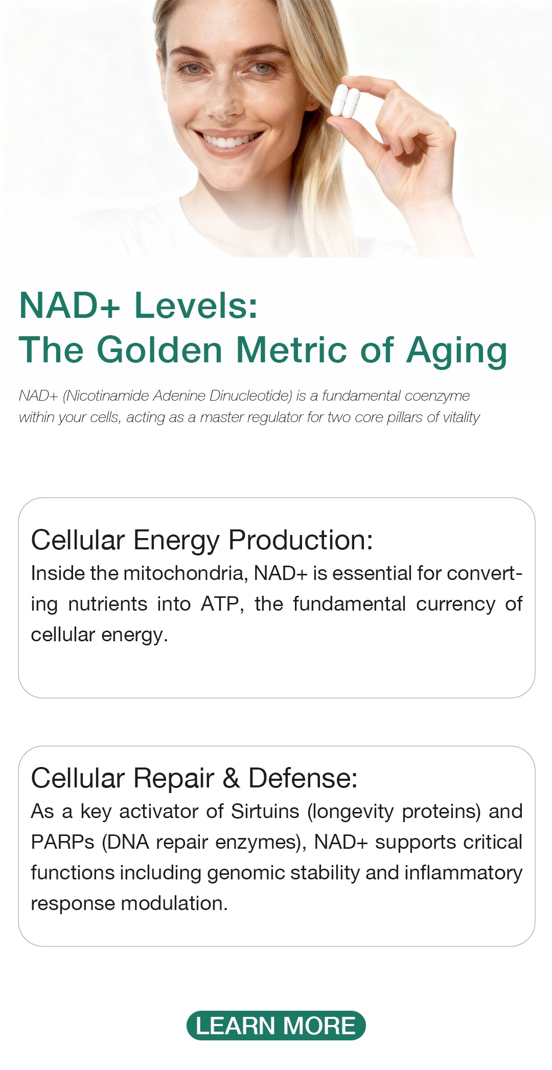 "I've shifted from 'topical' to 'internal.' Ergothioneine and Reishi are powerful antioxidants, while NADH and PQQ charge my cells from within. After a few weeks, my complexion has a radiance and firmness that no high-end cream could achieve alone."
