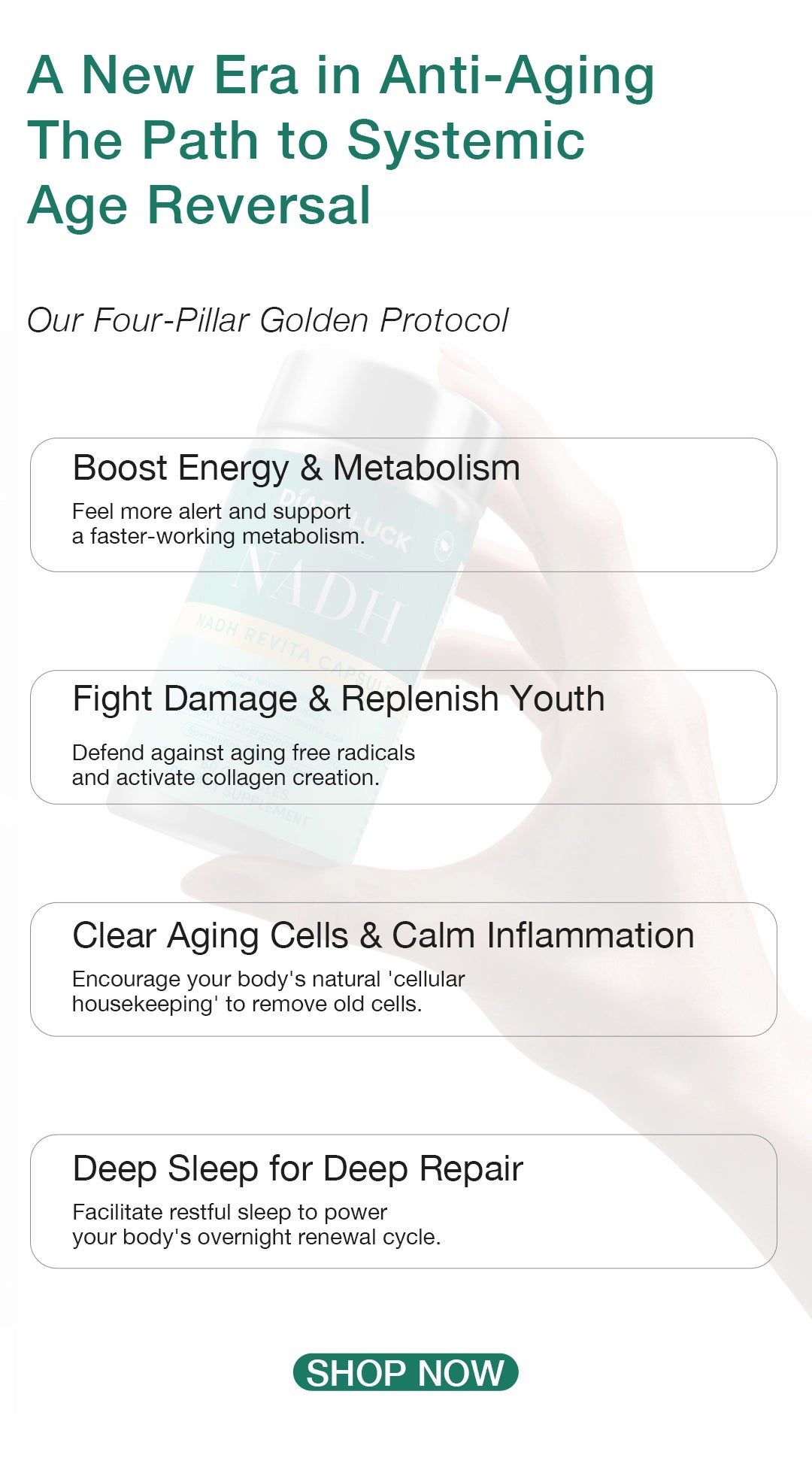 "I've shifted from 'topical' to 'internal.' Ergothioneine and Reishi are powerful antioxidants, while NADH and PQQ charge my cells from within. After a few weeks, my complexion has a radiance and firmness that no high-end cream could achieve alone."